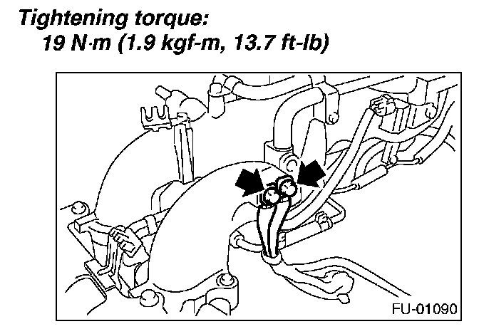 7. Tighten the bolts which install injector pipe on intake manifold.