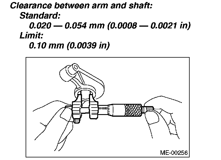 2) If the oil clearance exceeds the limit value, replace the valve rocker arm or shaft, whichever shows greater amount of wear.