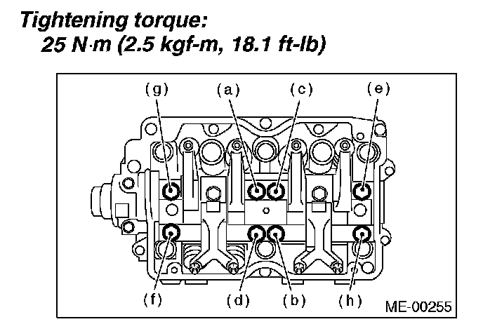 Tightening torque: 25 Nm (2.5 kgf-m, 18.1 ft. lbs.)