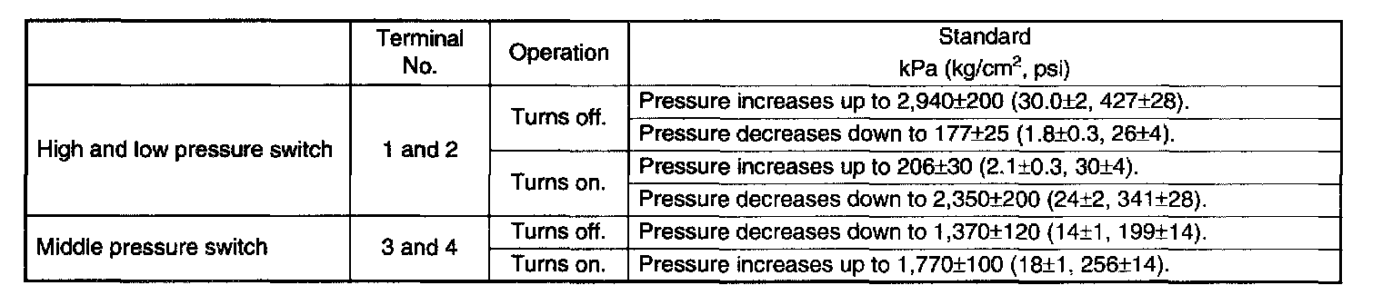 Pressure Switch (Triple Pressure Switch)INSPECTION