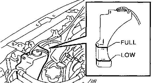 5. If the engine coolant level drops from FULL level of reservoir tank, add engine coolant to FULL level.