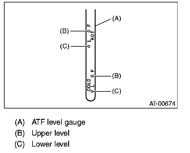 INSPECTIONNOTE: The level of ATF varies with fluid temperature. Pay attention to the fluid temperature when checking ATF level.