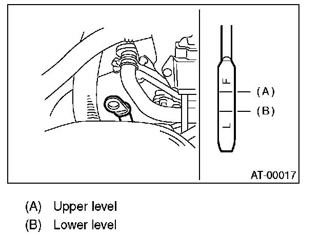 4. Remove it again and note the reading. If the differential gear oil level is below the "L" line, add oil to bring the level up to the "F" line.