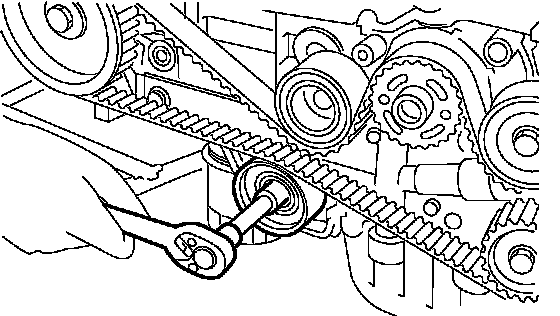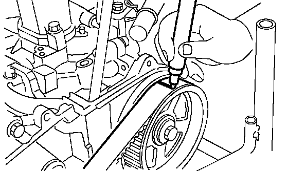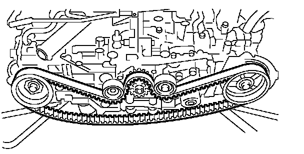 When installing the timing belt, be sure to align all alignment marks on the belt with corresponding marks on the sprockets. If incorrectly installed, interference between pistons and valves may occur.