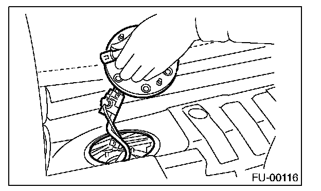 8. Remove the bolts which install the fuel sub level sensor on the fuel tank.