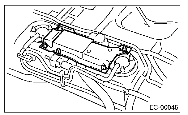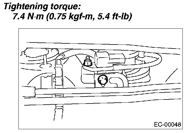 5. Remove the nuts and bolts which install the fuel tank pressure sensor on bracket.