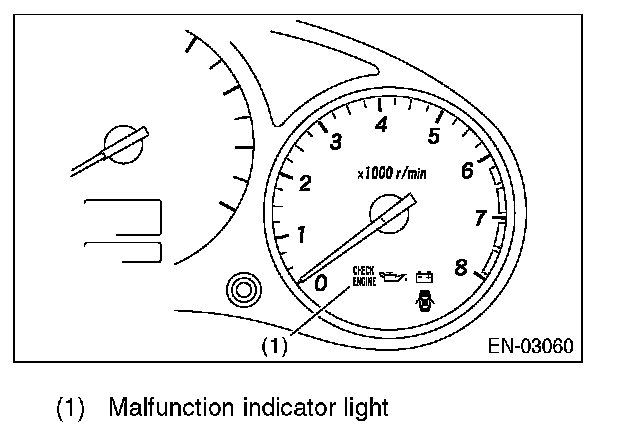 ACTIVATION OF MALFUNCTION INDICATOR LIGHT1. When the ignition switch is turned to ON (engine off), the malfunction indicator light in the combination meter illuminates.