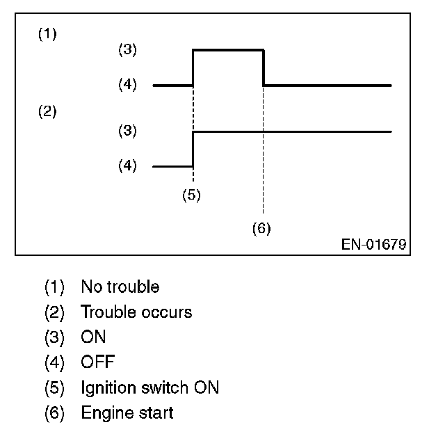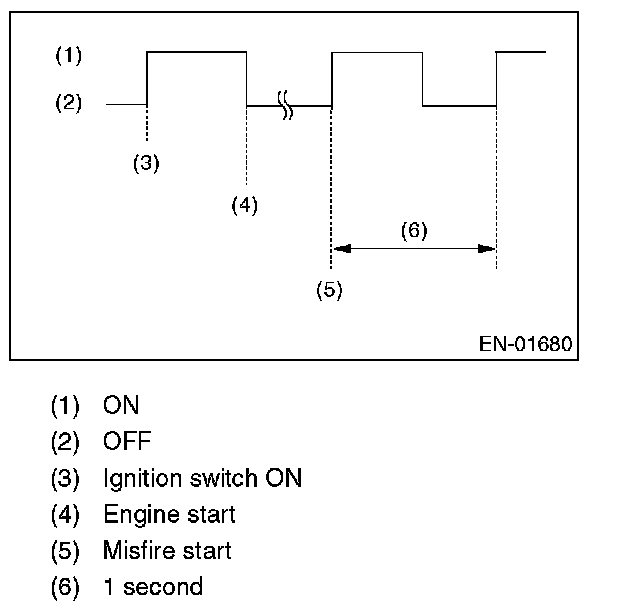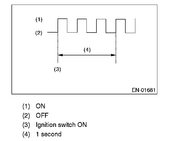 4. When the ignition switch is turned to ON (engine off) or to "START" with test mode connector connected, the malfunction indicator light blinks at a cycle of 3 Hz.