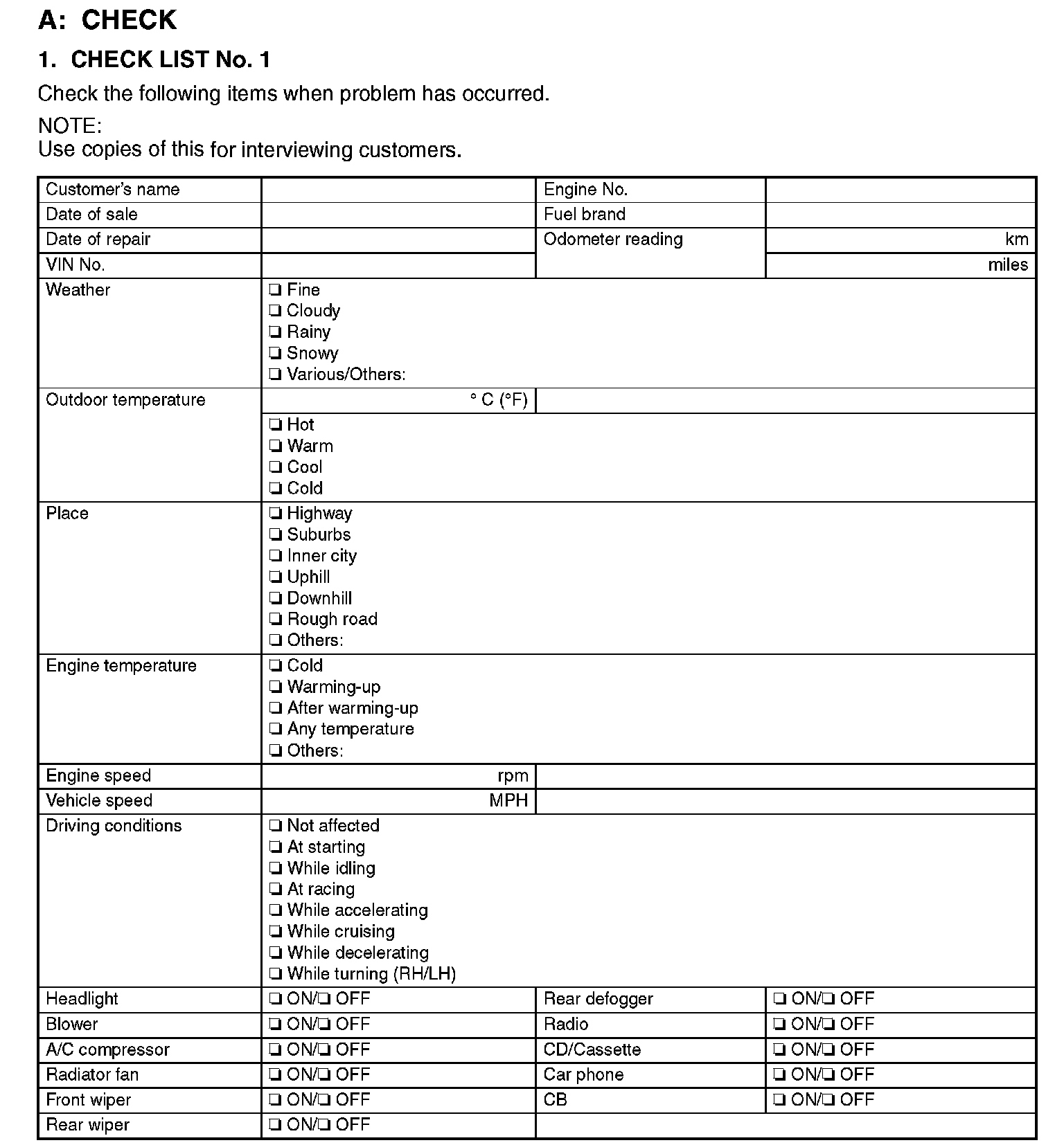 Check List No.1: