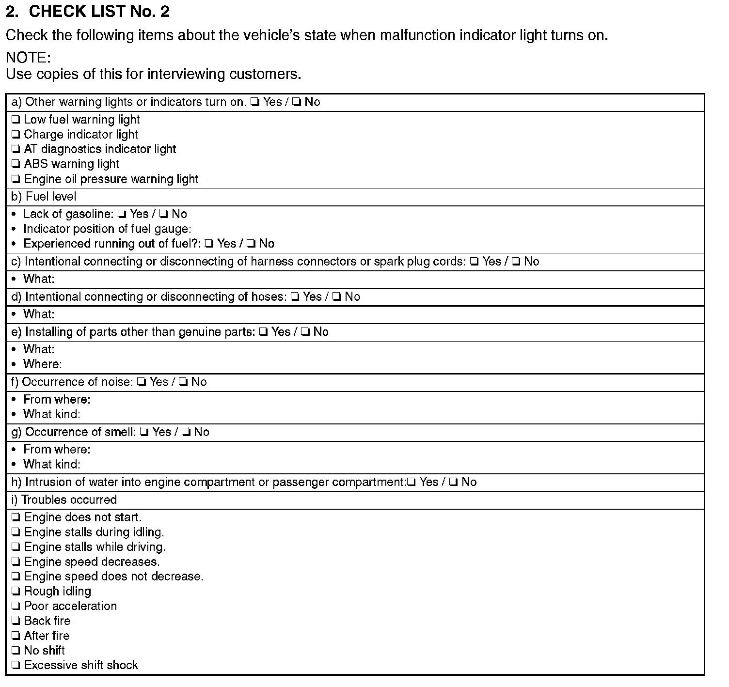 Check List No.2: