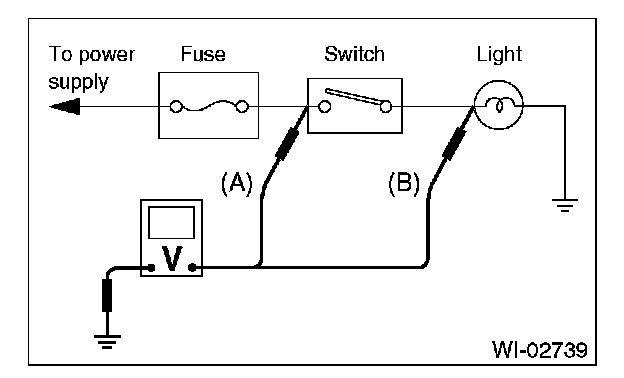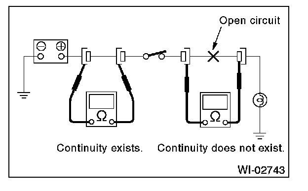Disconnect all connectors affected, and check the continuity in wiring between adjacent connectors. When the ohmmeter indicates "infinite", the wiring is open.