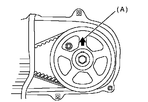 NOTE: When the arrow mark (A) on cam sprocket (LH) comes exactly to the top, #1 cylinder piston is brought to the top dead center of compression stroke.