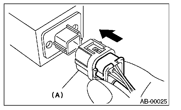 2. With the lock arm (A) pushed in, pull the connector in the direction of arrow, and then disconnect the connector.