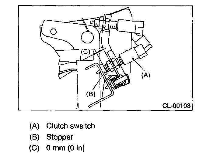 1. Install the clutch switch and clutch pedal stopper so that the gap between them is O mm (O inch).