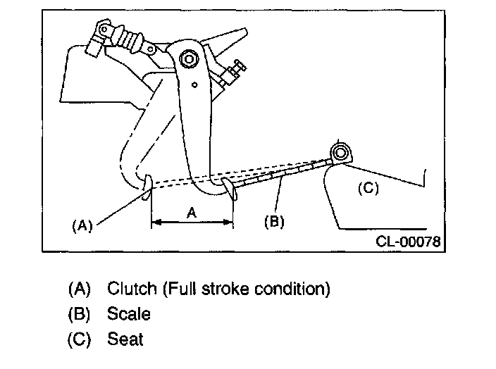 Specified clutch pedal full stroke: A 130 - 135 mm (5.12 - 5.31 inch)