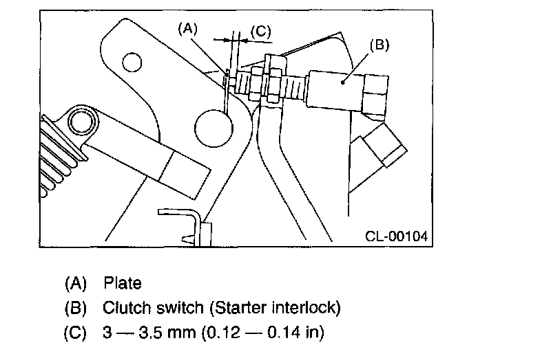 3. Adjust the clutch pedal plate and clutch switch so that the gap between them is 3 - 3.5 mm (0.12 - 0.14 inch).