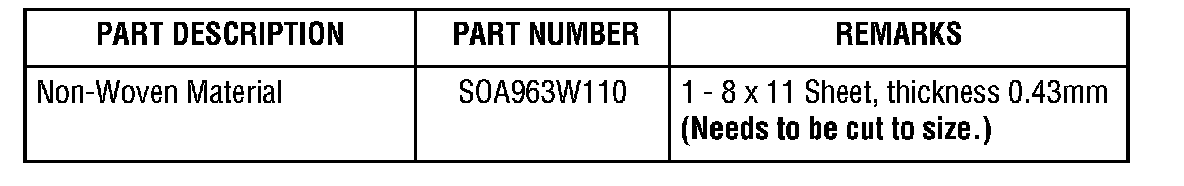Use part # S0A635079 for the non-woven material. The part # is non-orderable and used for claim purposes only.