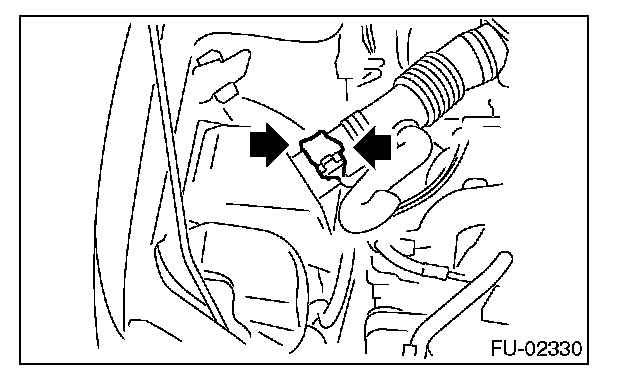 2. Disconnect the connector from mass air flow and intake air temperature sensor.