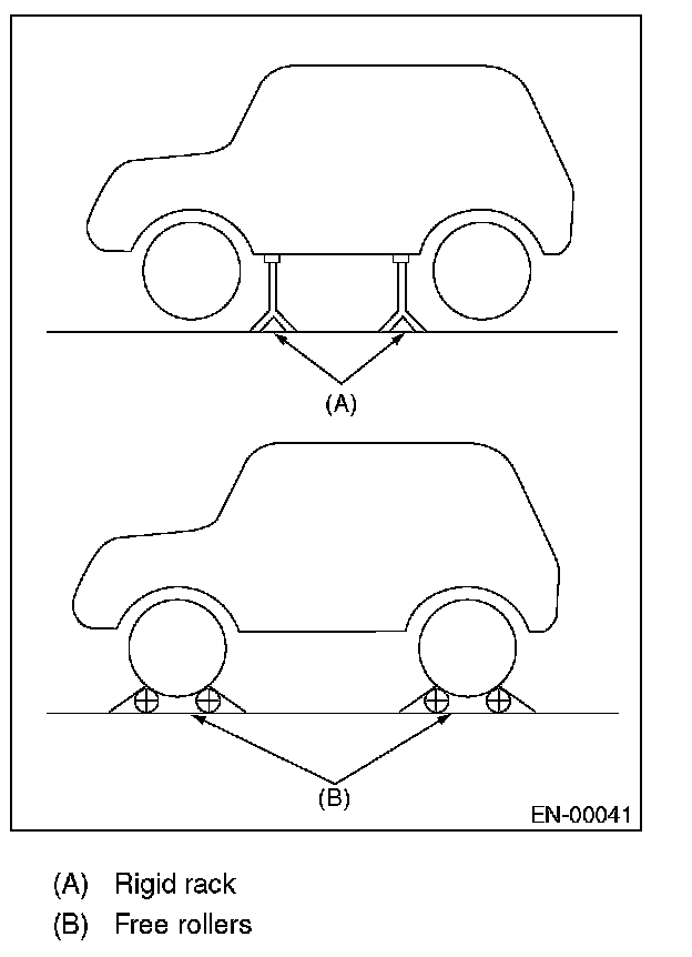 2. Raise the vehicle using a garage jack and place on rigid racks or drive the vehicle onto free rollers.