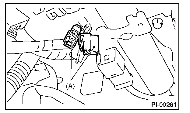6. Connect the test mode connector (A) at the lower portion of instrument panel (on driver's side).