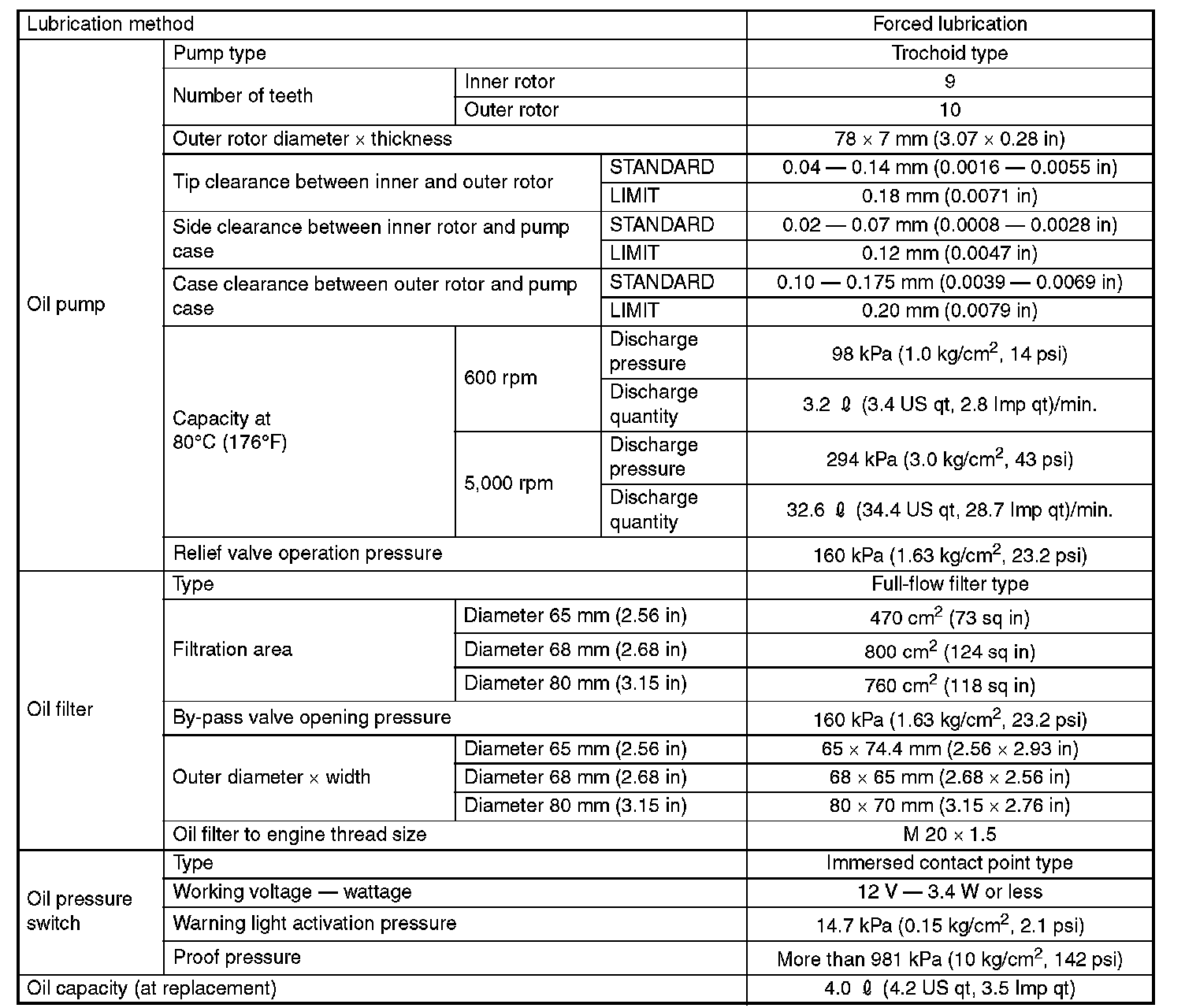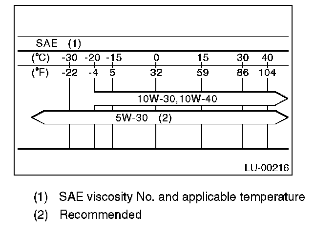 NOTE: If the vehicle is used in areas with very high temperatures or for other heavy duty applications, the following viscosity oils may be used: API standard: SL or SJ