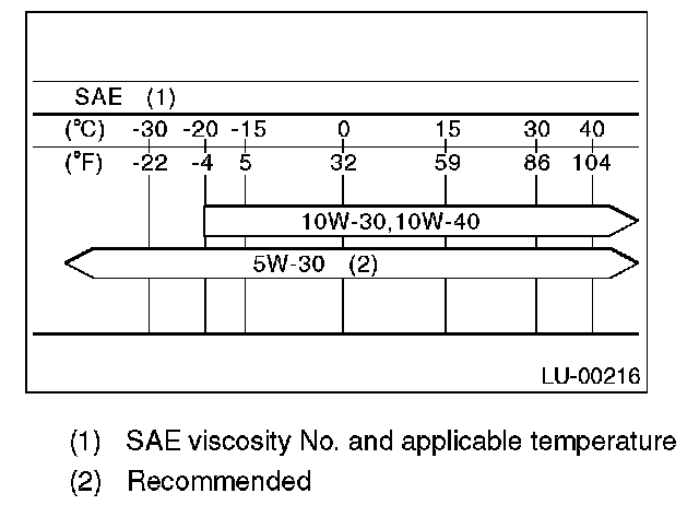 CAUTION: When replenishing oil, it does not matter if the oil to be added is a different brand from that in the engine; however, use oil having the API standard and SAE viscosity No. designated by SUBARU.