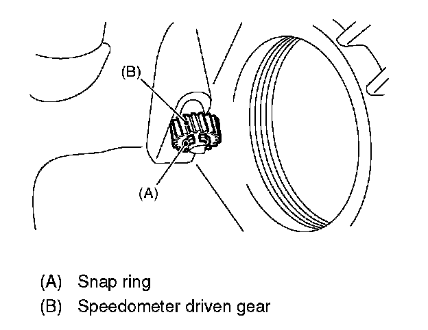 13. Remove the snap ring, and then remove the speedometer driven gear.
