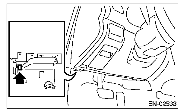 7. Connect the Subaru Select Monitor to data link connector located in the lower portion of the instrument panel (on the driver's side).