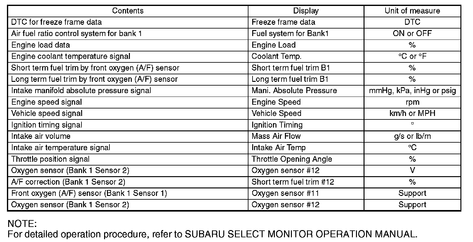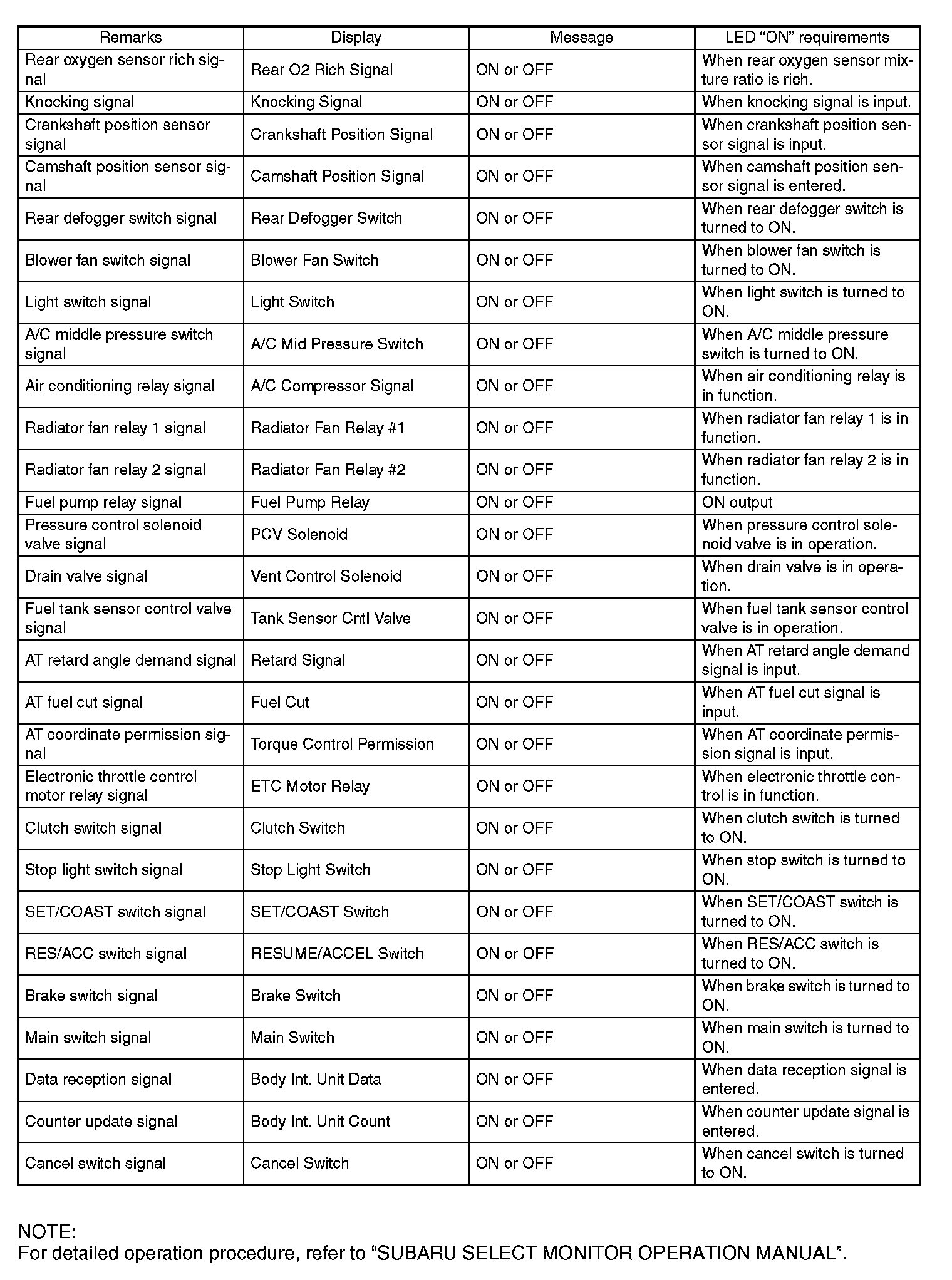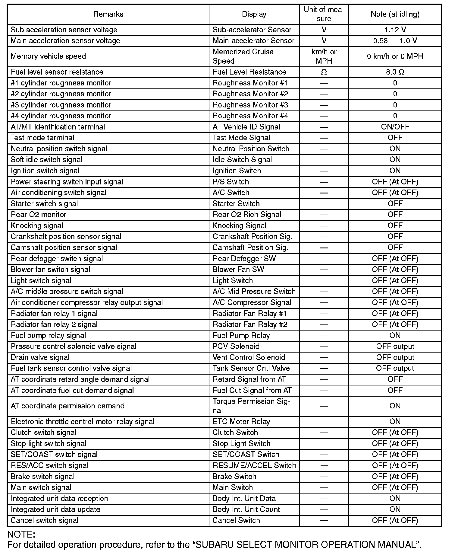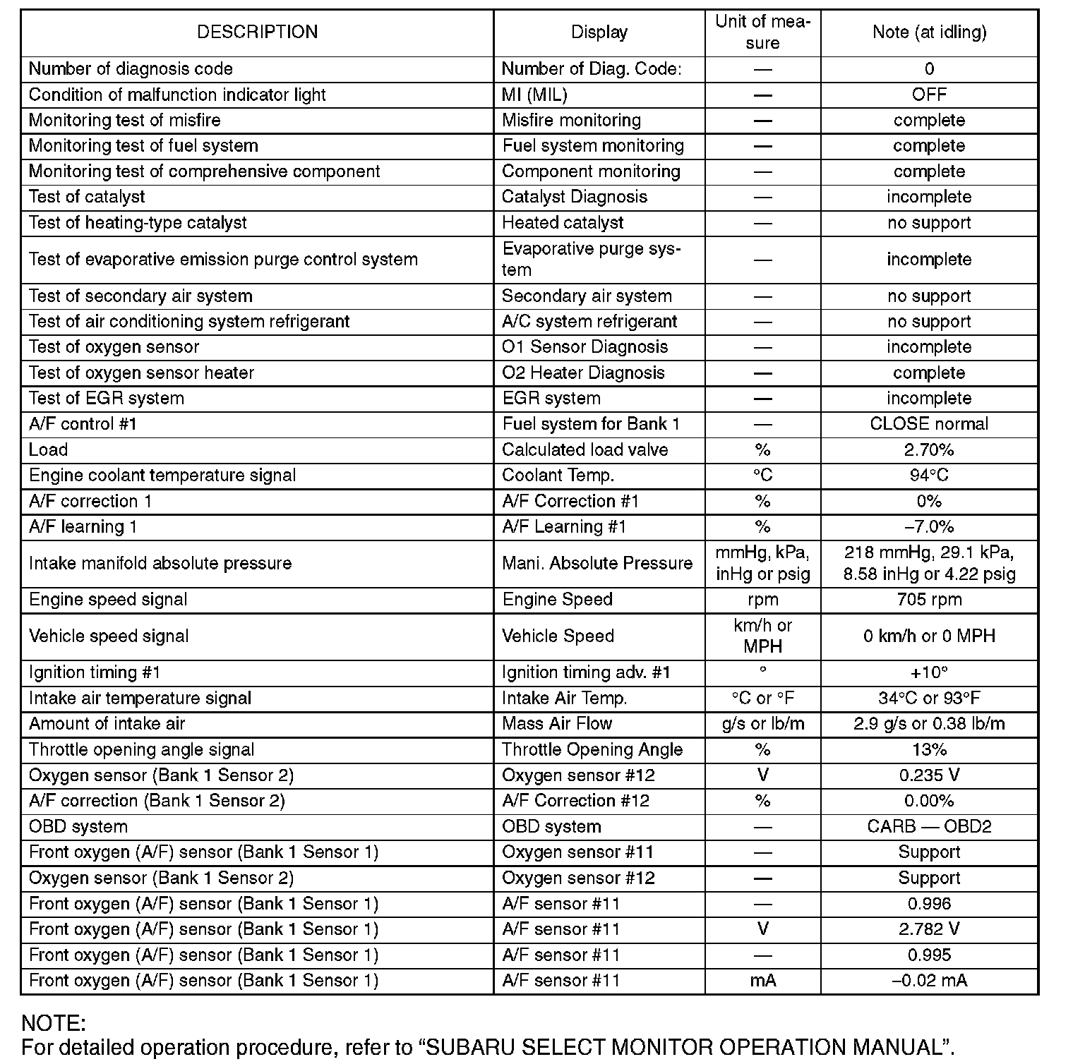NOTE: For detailed operation procedure, refer to "SUBARU SELECT MONITOR OPERATION MANUAL".