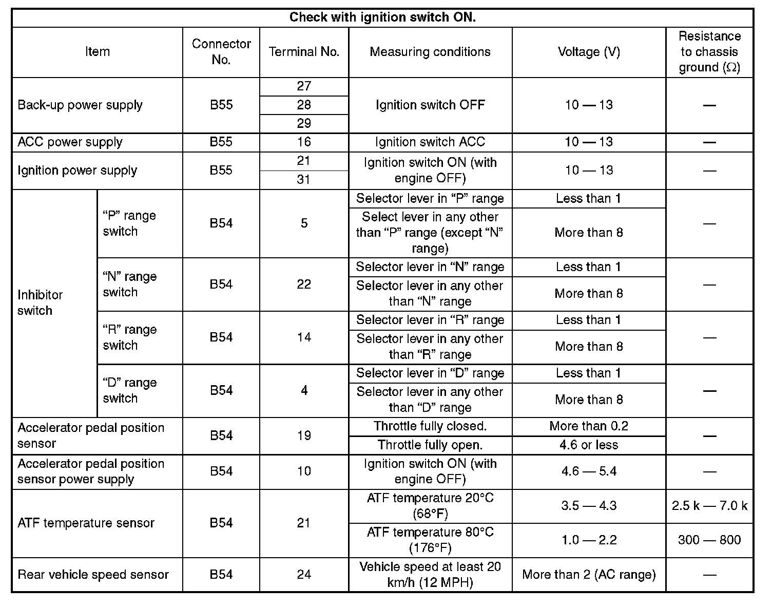 Pinout Values and Diagnostic Parameters