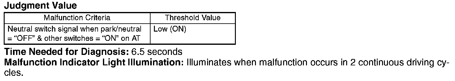 DTC P0851 NEUTRAL SWITCH INPUT CIRCUIT LOW (AT MODEL)1. OUTLINE OF DIAGNOSIS