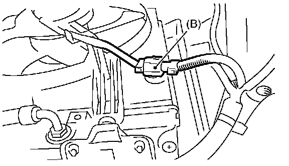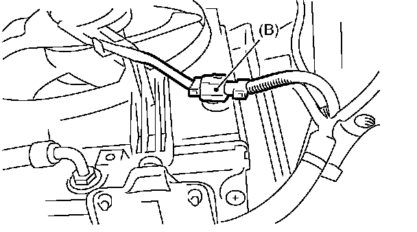 8. Disconnect the connectors of radiator main fan motor (A) and sub fan motor (B).