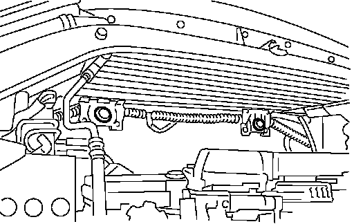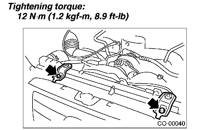 NOTE: Make pins on the lower side of radiator be fitted into the radiator lower cushions on body side.