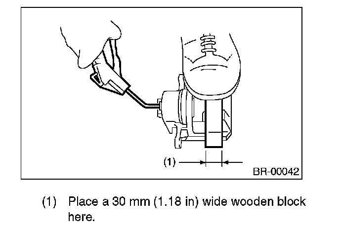 2. Place a wooden block in caliper body as shown in the figure to prevent the piston from jumping out and avoid being damaged.