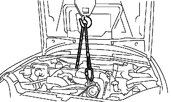 NOTE: Be careful not to damage adjacent parts or body panels with crank pulley, oil level gauge, etc.