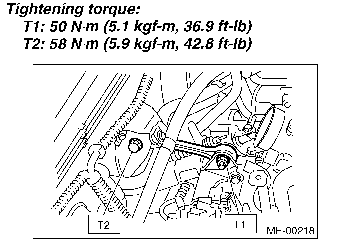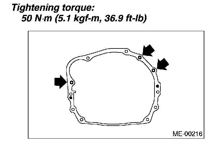 4. Tighten the bolts which hold upper side of transmission to engine.