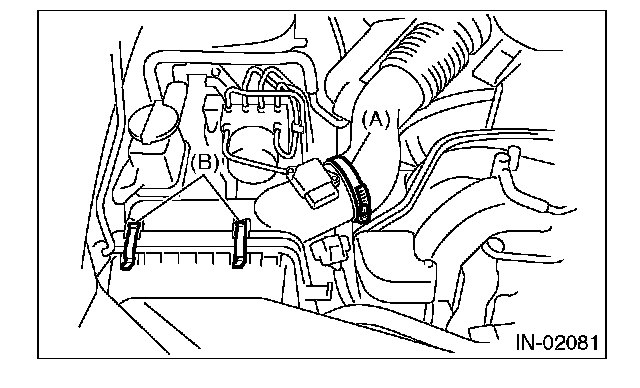 4. Loosen the clamp (A) which connects the air cleaner case to intake duct.