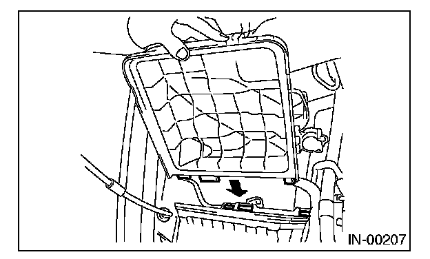 NOTE: Fasten the air cleaner case with a clip after inserting the lower tab of the case.