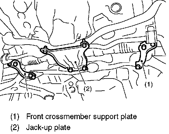 2. Lift-up the vehicle, and then remove the front crossmember support plate and jack-up plate.