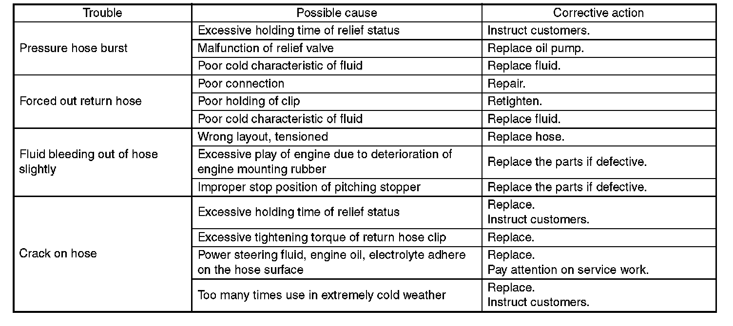 Since resistances for heat or low temperature brittleness are gradually declining according to time accumulation of hot or cold conditions for the hoses and their service lives are shortening accordingly, it is necessary to perform careful inspection frequently when the vehicle is used in hot weather areas, cold weather areas and a driving condition in which many steering operations are required in short time.