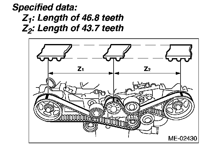 Using white paint, put alignment marks or arrow marks on the timing belts in relation to the crank sprocket and cam sprockets.