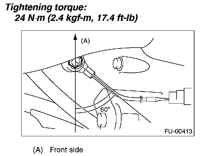 NOTE: Extraction area of knock sensor cord must be positioned at a 60 degree angle relative to the engine rear.
