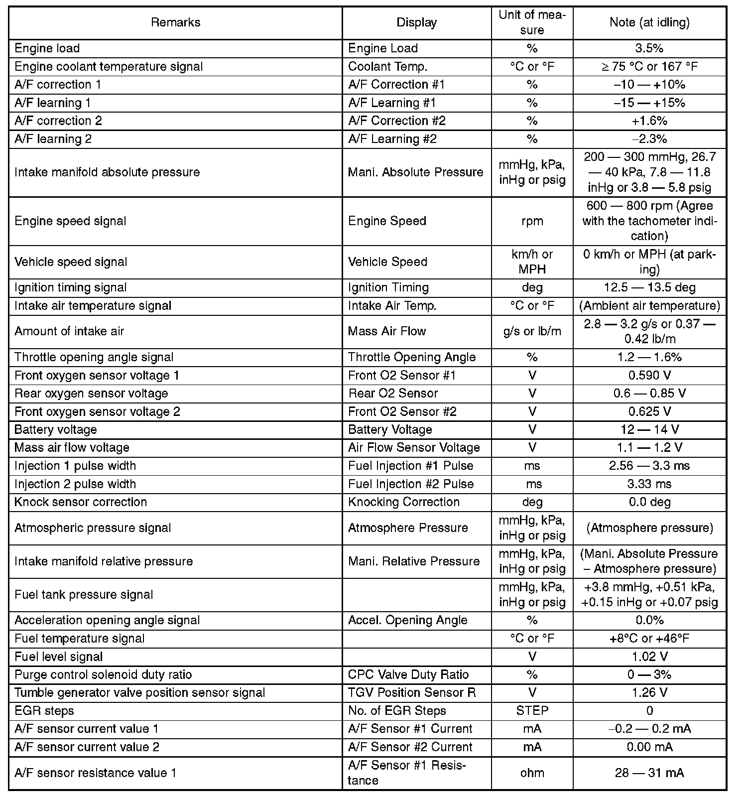 5. READ CURRENT DATA FOR ENGINE (OBD MODE)