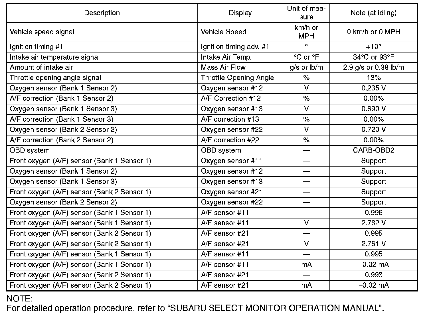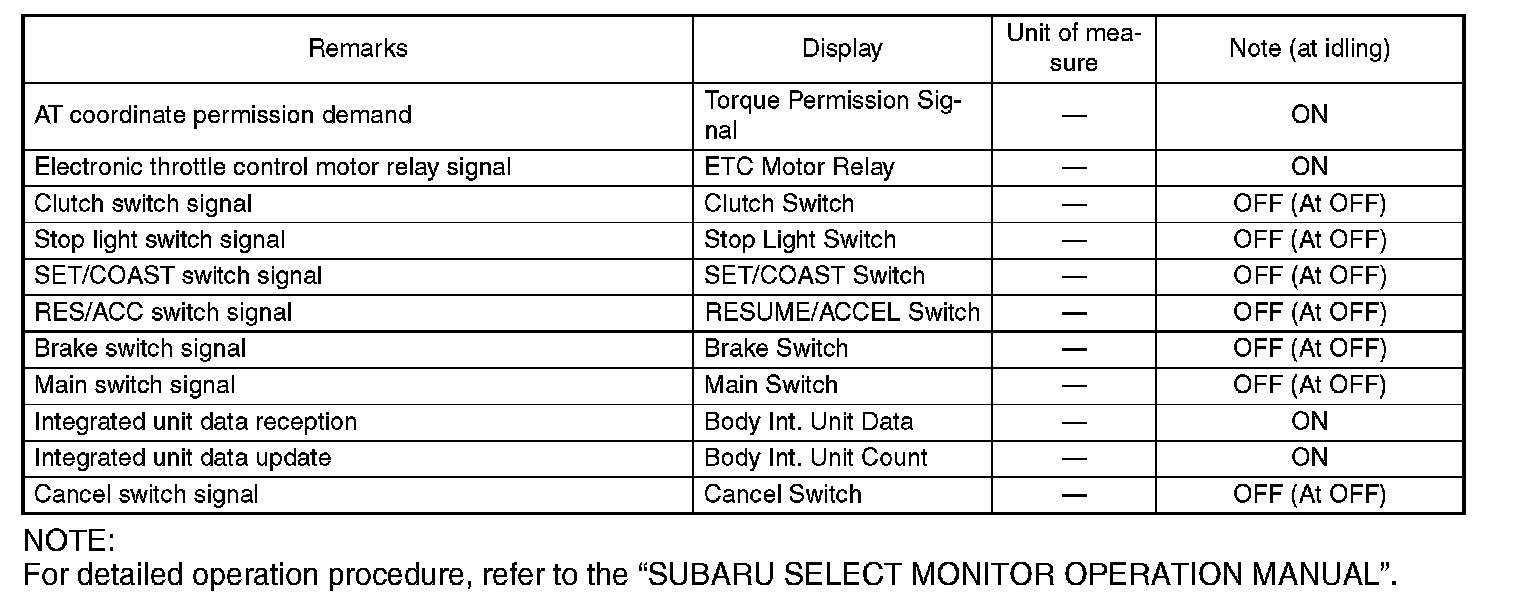 NOTE: For detailed operation procedure, refer to "SUBARU SELECT MONITOR OPERATION MANUAL".