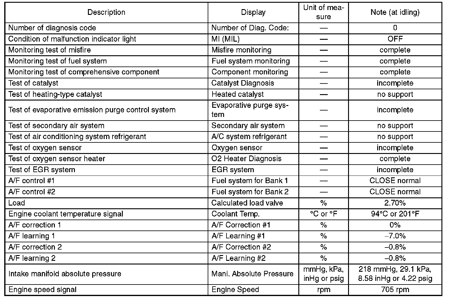 4. READ CURRENT DATA FOR ENGINE. (NORMAL MODE)