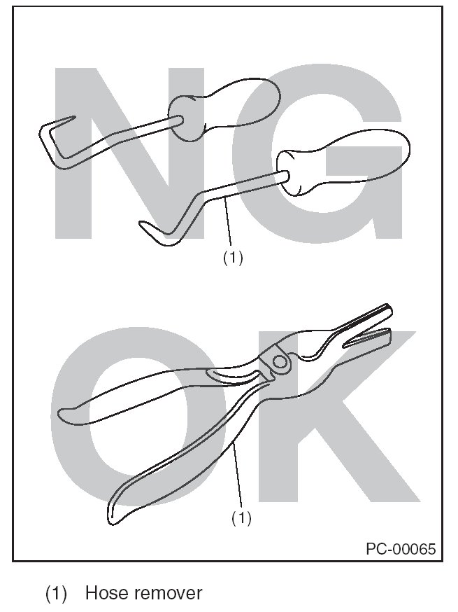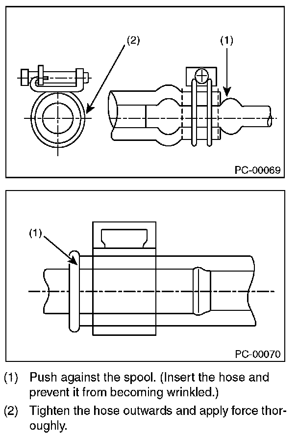 - Perform the operation with the hose removed. If the operation is performed without removing the hose, it may damage inner surface of the hose.