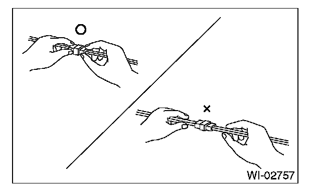 2. Securely fasten the wiring harness with clamps and slips so that the harness does not interfere with the body end parts or edges and bolts or screws.