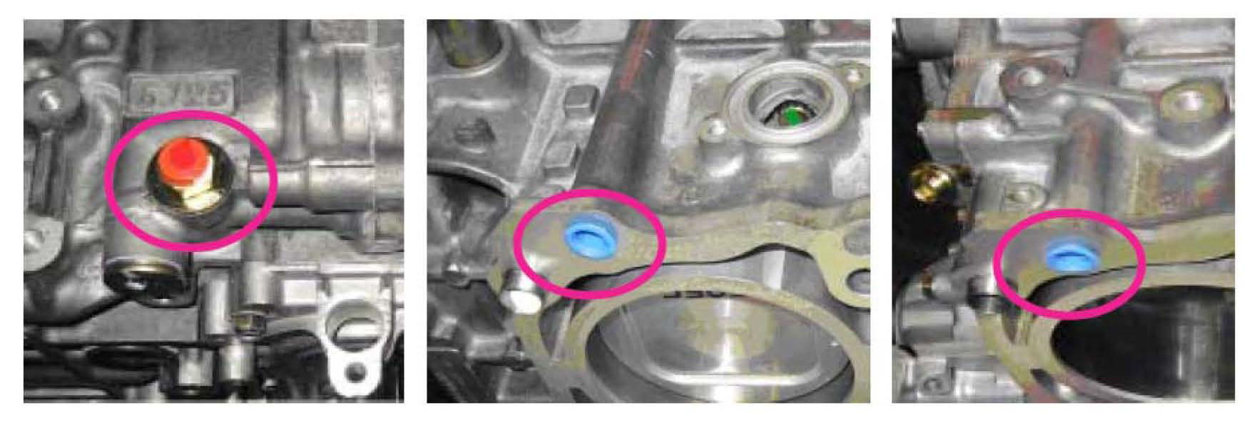 Be sure to remove the three plastic transit plugs (shown) prior to installation. One is located in the oil pressure switch plug. The others are in the main oil gallery ports that feed each head.