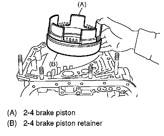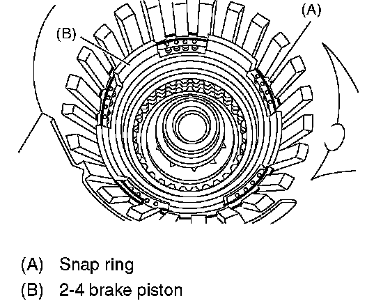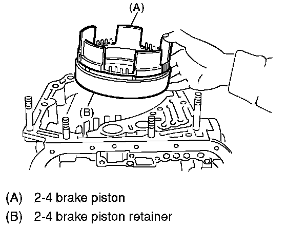 21. Remove the 2-4 brake piston and piston retainer without damaging.