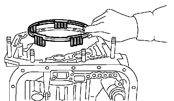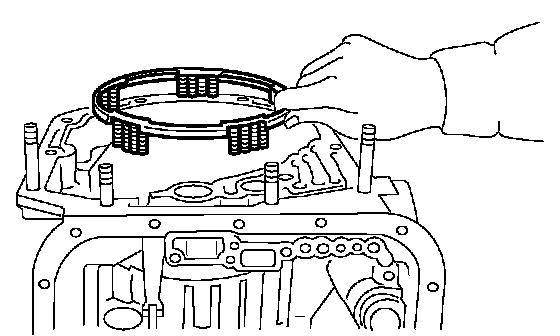 14. Installation of the low & reverse brake: Install the dish plate, driven plate and retaining plate, and then secure them with snap ring.